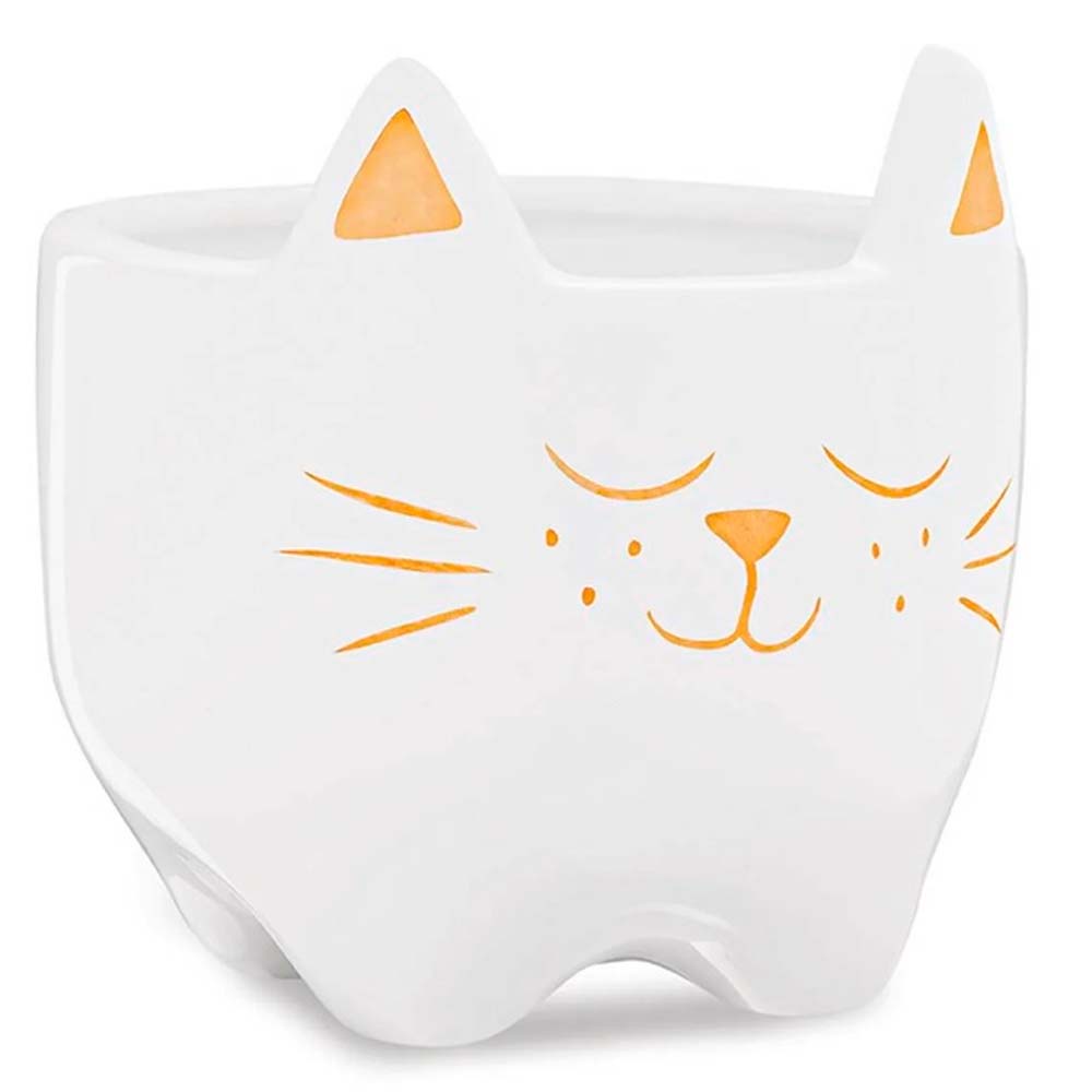 Vaso Mini Cachepot Gato Branco Enfeite Decorativo Cerâmica de Luxo Para Flores e Suculentas
