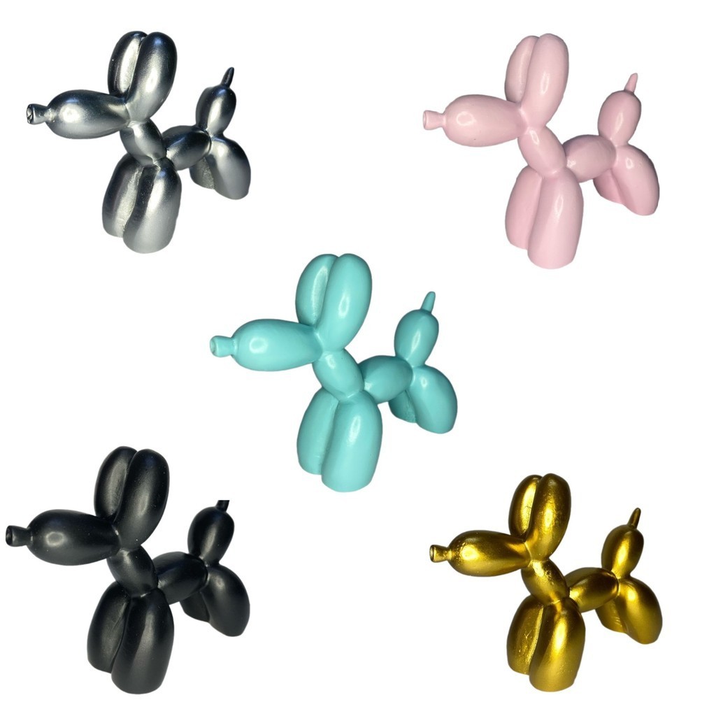 Estatua Enfeite Decorativo Cachorro De Balão Dog Resina 10cm Gold Prateado Luxo Sala