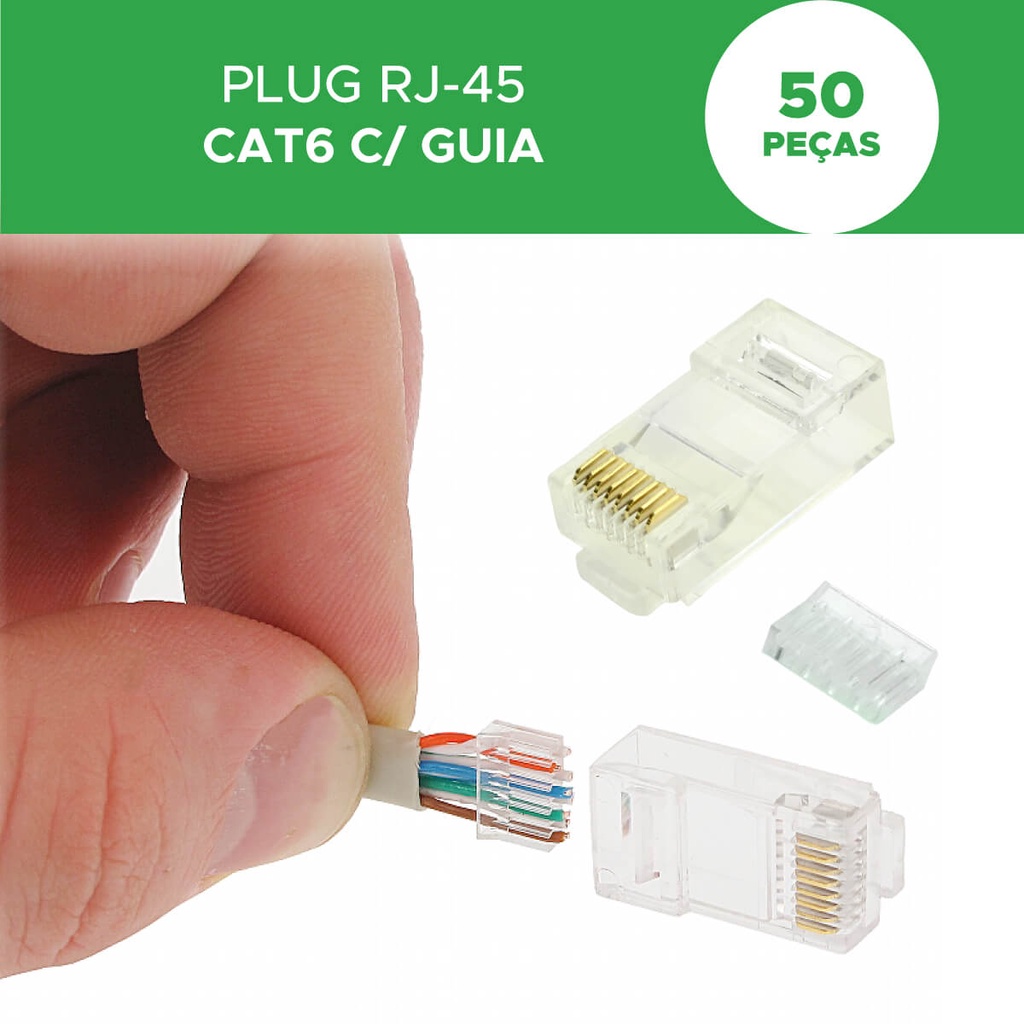 Kit com 50 Peças Plug Rj45 Macho Cat6 C/ Guia Crimpa Fácil