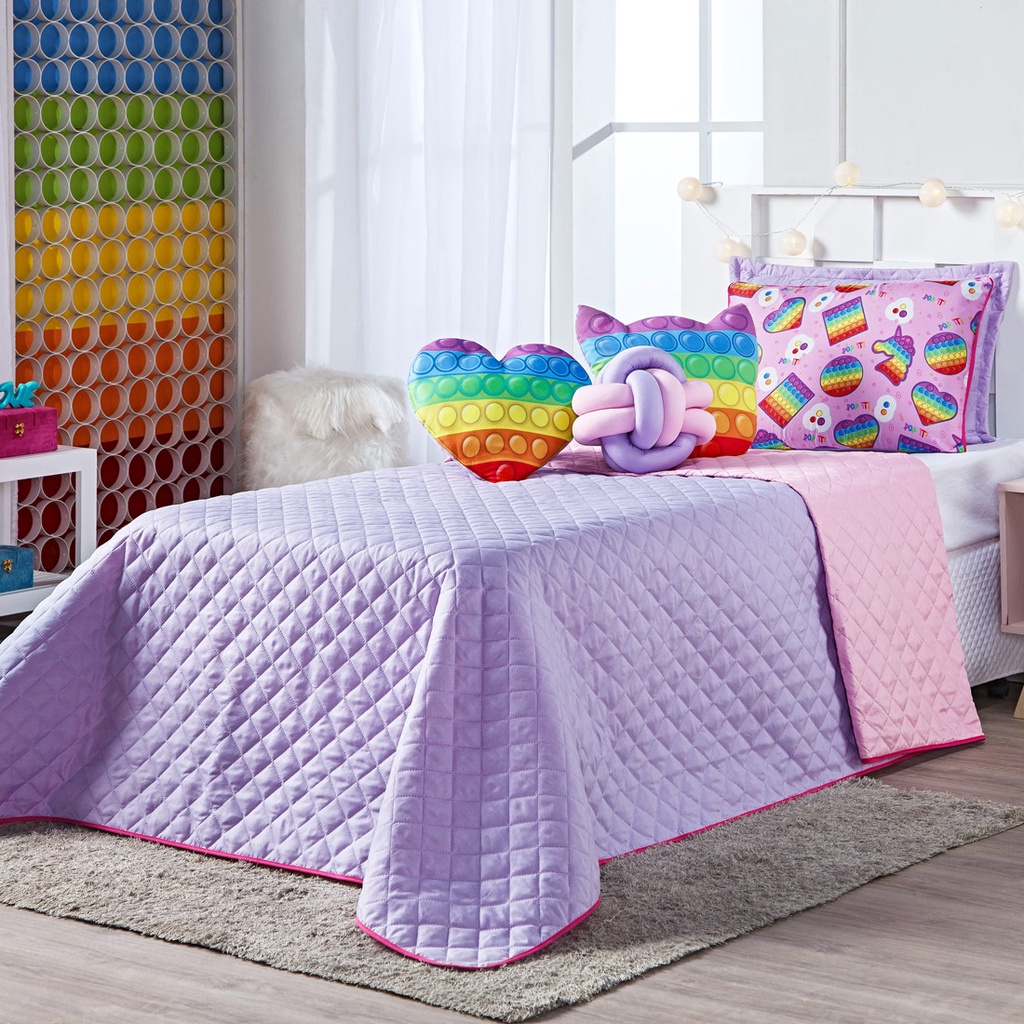 Kit Colcha Cobre-leito Kaique 2 Peças Rosa Solteiro Menina Promoção Colcha Menina Menino Protetor de Colchão Roupa de Cama Infantil Cobre-leito com porta travesseiro Feminino Masculino Cobre-leito para Cama Box e Padrão Envio Imediato