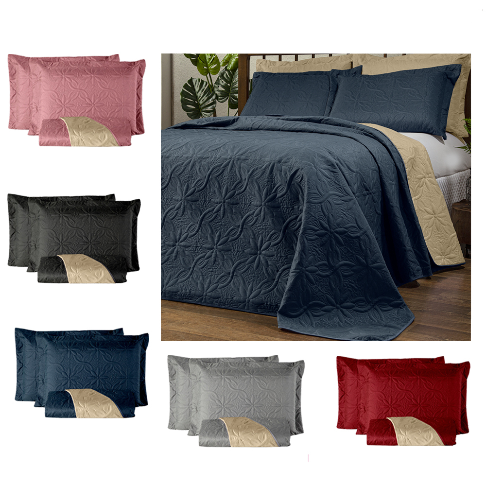 Kit Queen, Casal Padrão e Solteiro Cobre Leito Colcha Bouti 03 Peças Matelado Floral 160 Fios