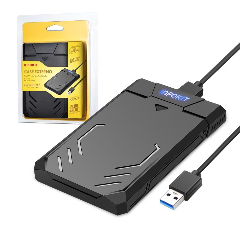 Case para HD de Notebook ou SSD SATA de 2.5 Polegadas USB 3.0 Externo com LED para PC Notebook PS2 PS3 PS4 Nintendo Switch Xbox Nintendo Wii TV e TV Box Celular Tablet