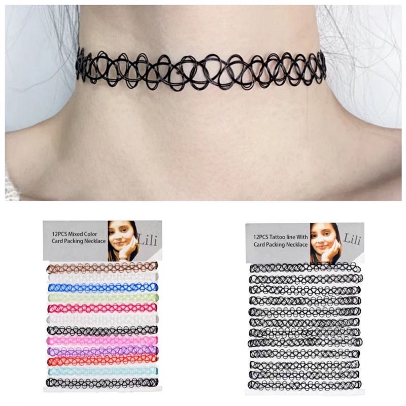 Gargantilha Colar Chocker tipo de nylon preta colorido