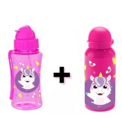 Kit Garrafinha Inox Infantil Squeeze Garrafa De Agua Canudo Plástico