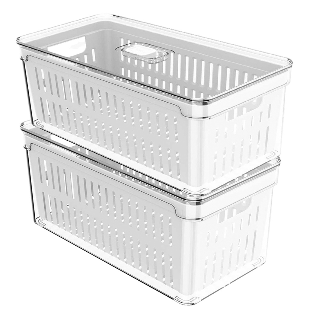Kit 2 Organizadores de Geladeira com Tampa e Cesto para Drenagem 5 Litros