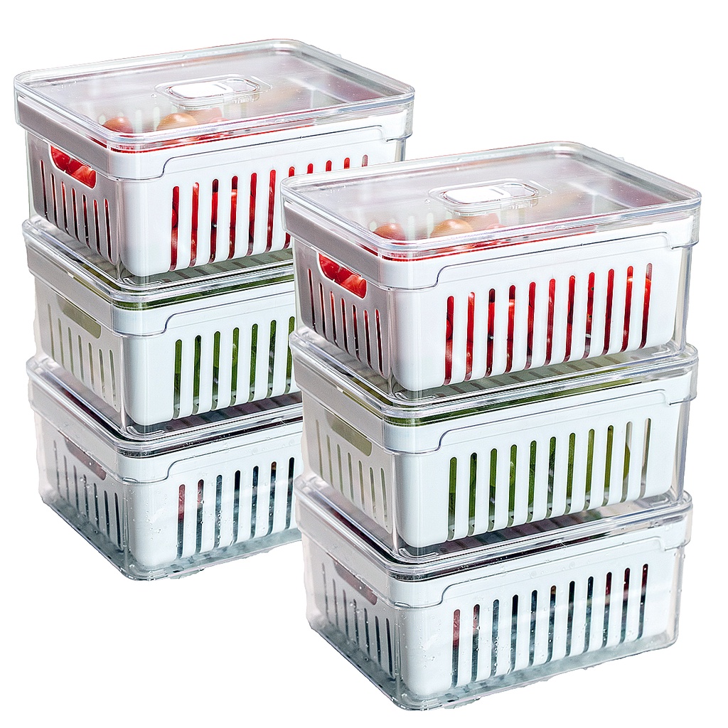 Kit 6 Organizadores Geladeira Acrílico Com Tampa Cesto Drenagem Clear Fresh 2,2L