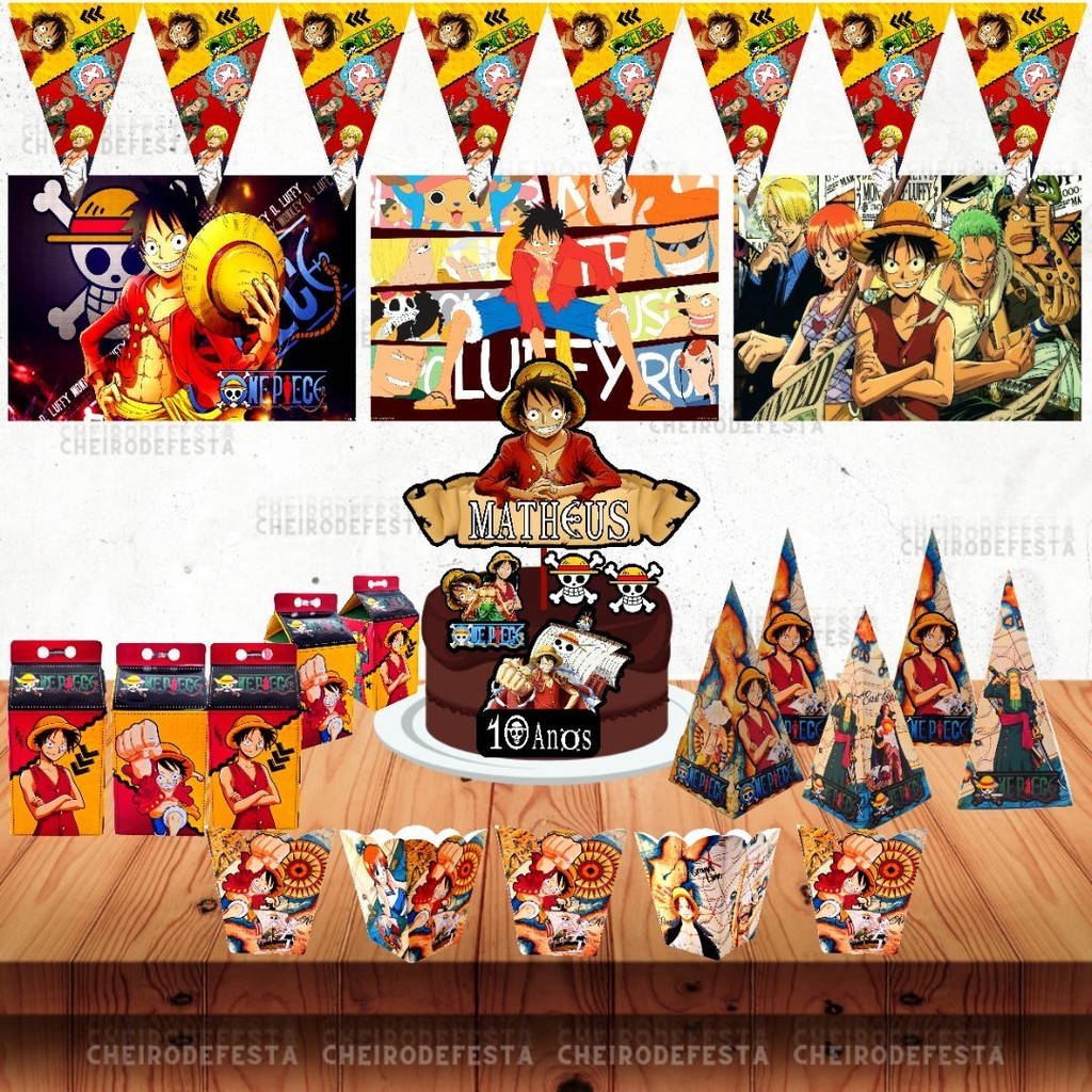 Kit só um bolinho M One Piece 43 Itens - One Piece Lembrancinha Festa Decoração.