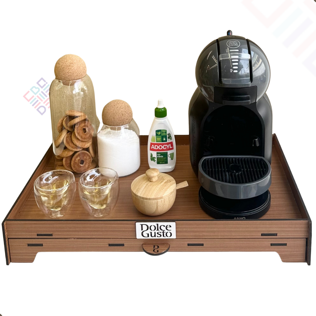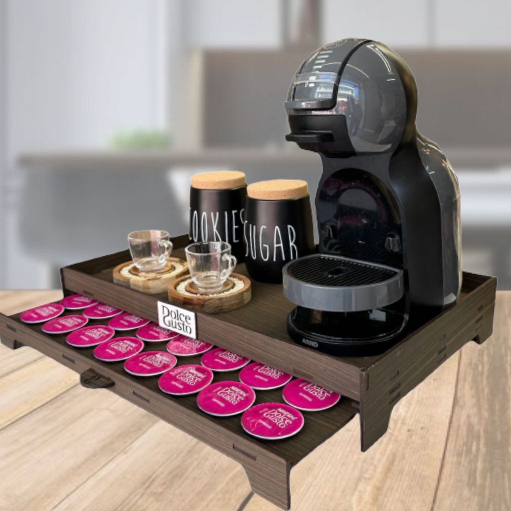 Bandeja Dolce Gusto Marrom Porta 40 Capsulas Gaveta Embutida decorativo dolce gusto grande mdf organizador apoio servir chá cafeteira