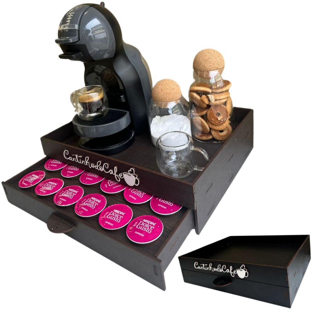 Bandeja Porta 40 Cápsulas de Café Com Gaveta Embutida Marrom Caramelo Compatível Com Dolce Gusto Nespresso Três Corações