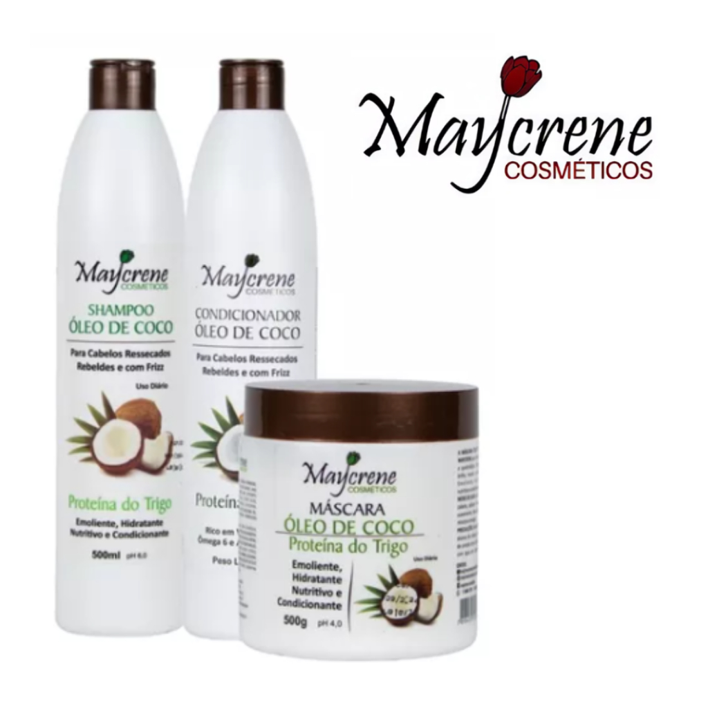 Kit Maycrene Óleo de Côco Shampoo, Condicionador e Mascara