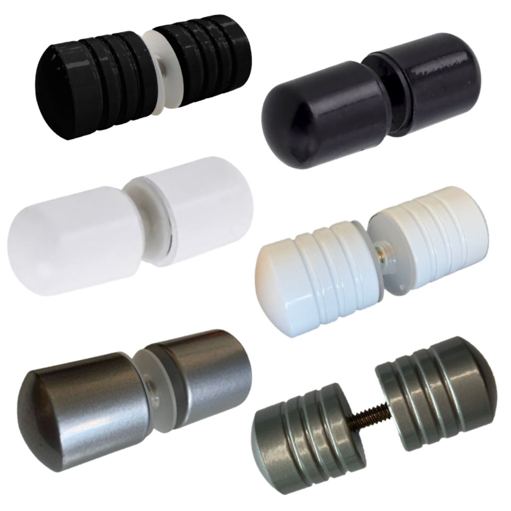 Puxador Duplo Cilíndrico para Box de Banheiro De Vidro Blindex Janela - Polido e Preto