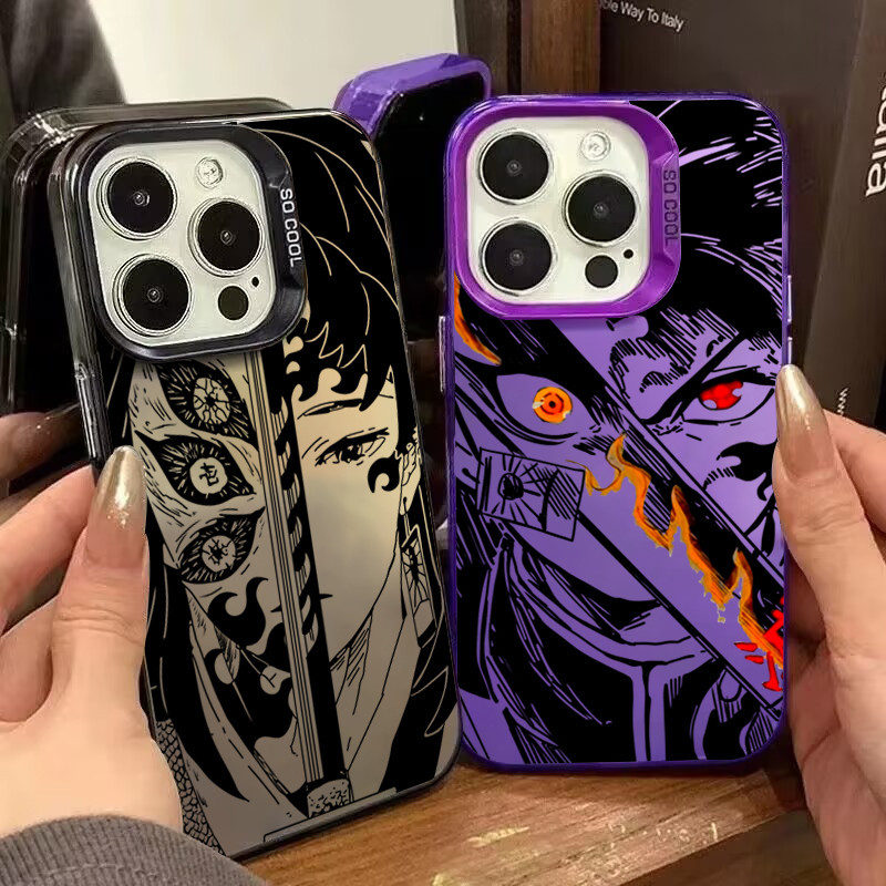 IMD Luxo Fosco Duro Capa De Telefone À Prova De Choque Para iPhone 16 15 Pro Max 14 13 12 11 7 8 Plus SE 2020 XS X XR Japão Anime Demon Slayer