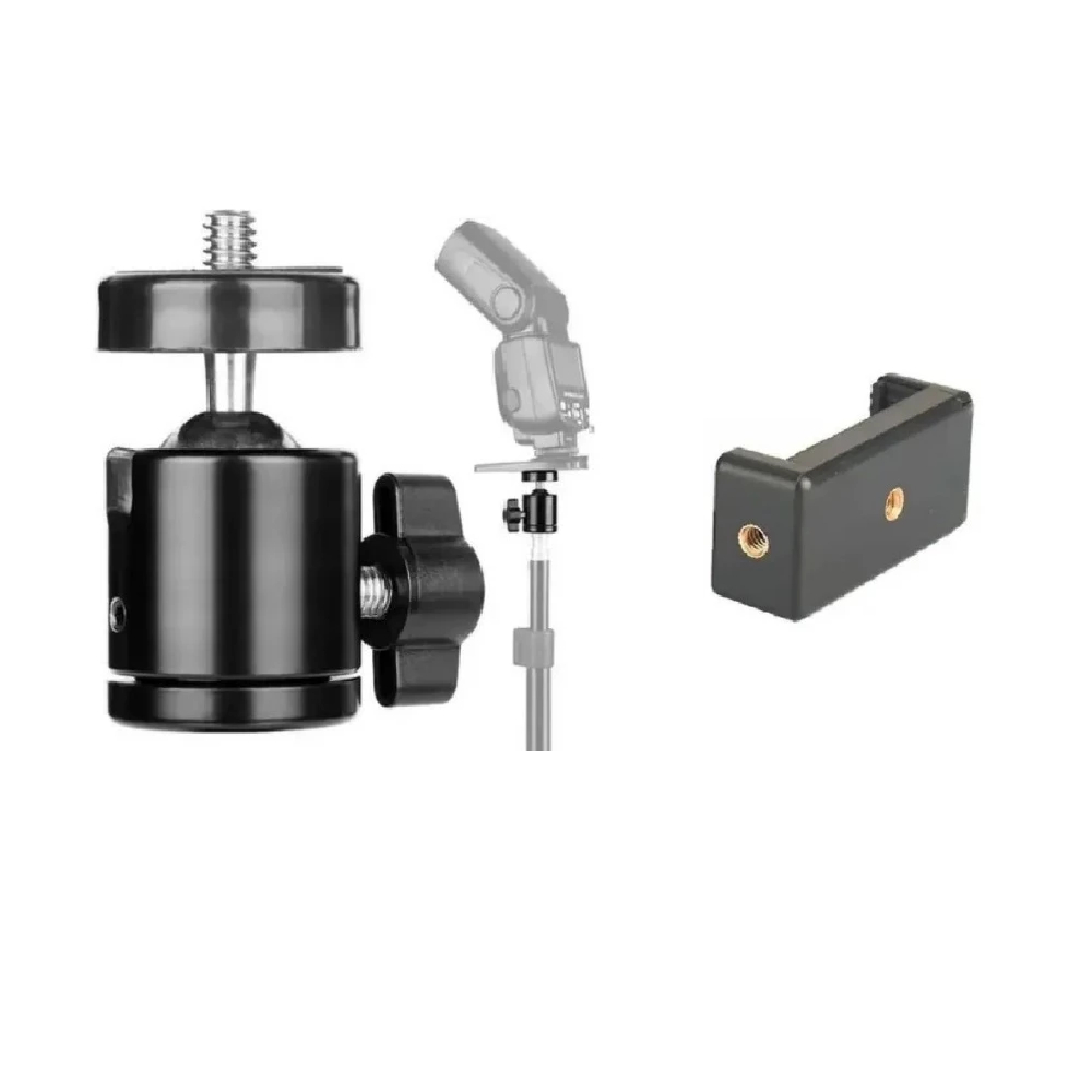 Kit Adaptador Ball Head + Suporte de Celular com Rosca Universal para Tripé e Ring Light