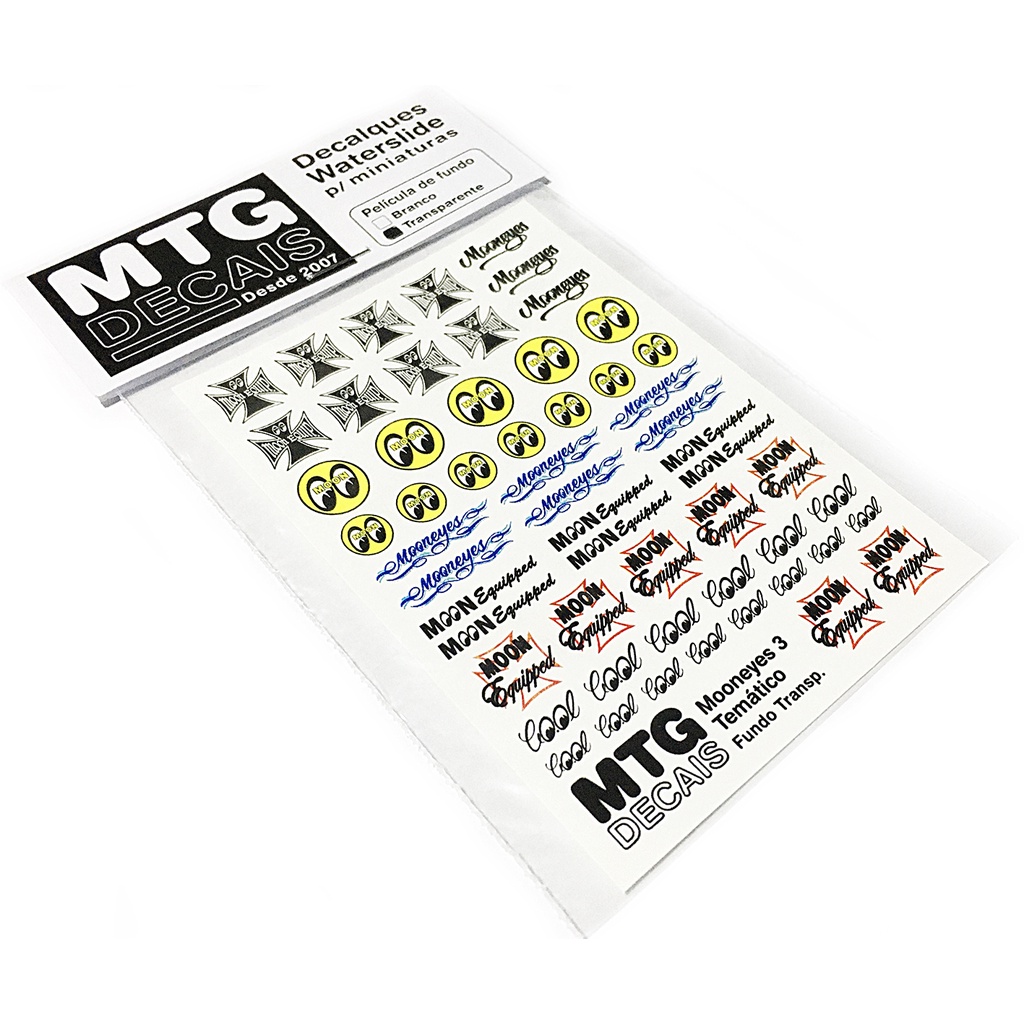 Decalque Mooneyes 3 MTG Decais Hot Wheels Escala 1:64 Hot Rod VW Maisto M2 Jada Greenlight