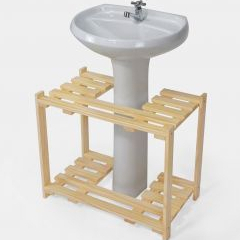 Gabinete Banheiro Estante Coluna Pia 2 Prateleiras Porta Papel Higiênico e Toalhas