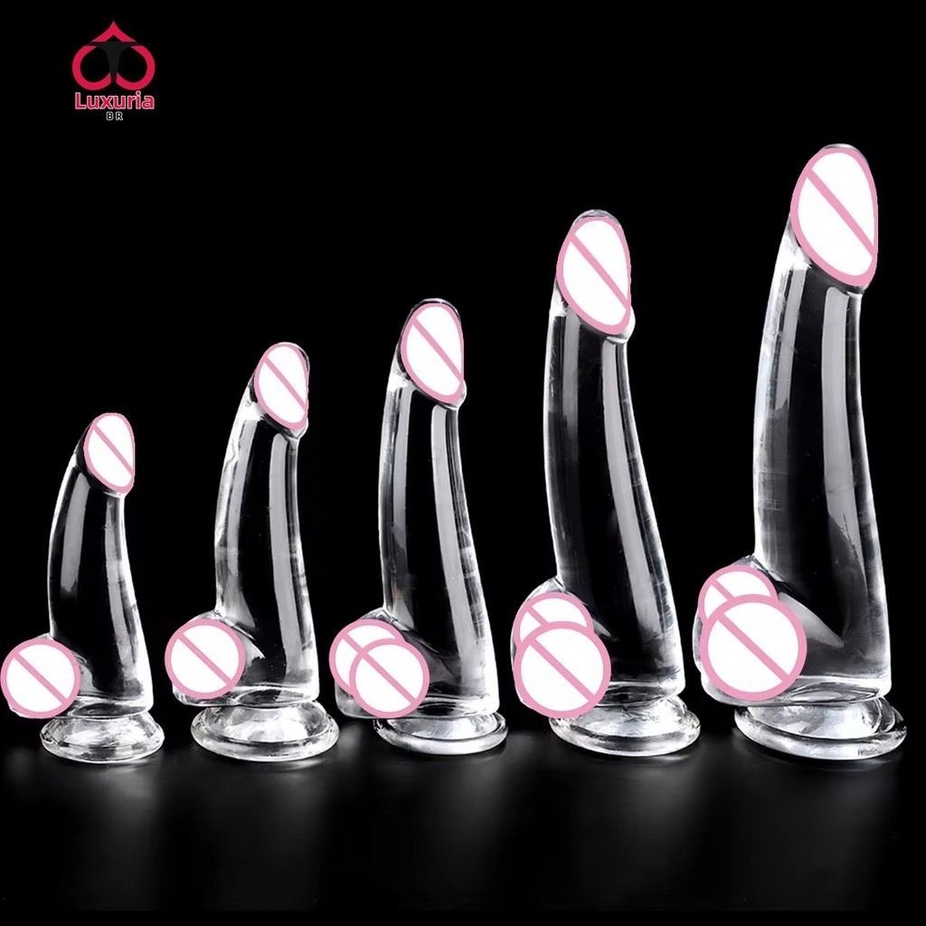 SP-57-58-59 Dildo Transparente para Homens e Mulheres, Plug Anal, Strapon, Ventosa, Estimulador Gspot Vaginal, Dilatador Anal, Pênis, Masturbador, Brinquedos Sexuais