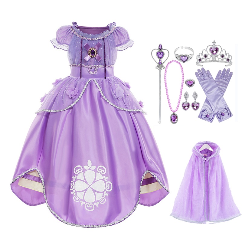 Princesa Sophia O Primeiro Meninas Vestido De Festa Até Manga Sopro Tornozelo Comprimento Lantejoulas Tulle Fantasia Crianças De Aniversário Cosplay