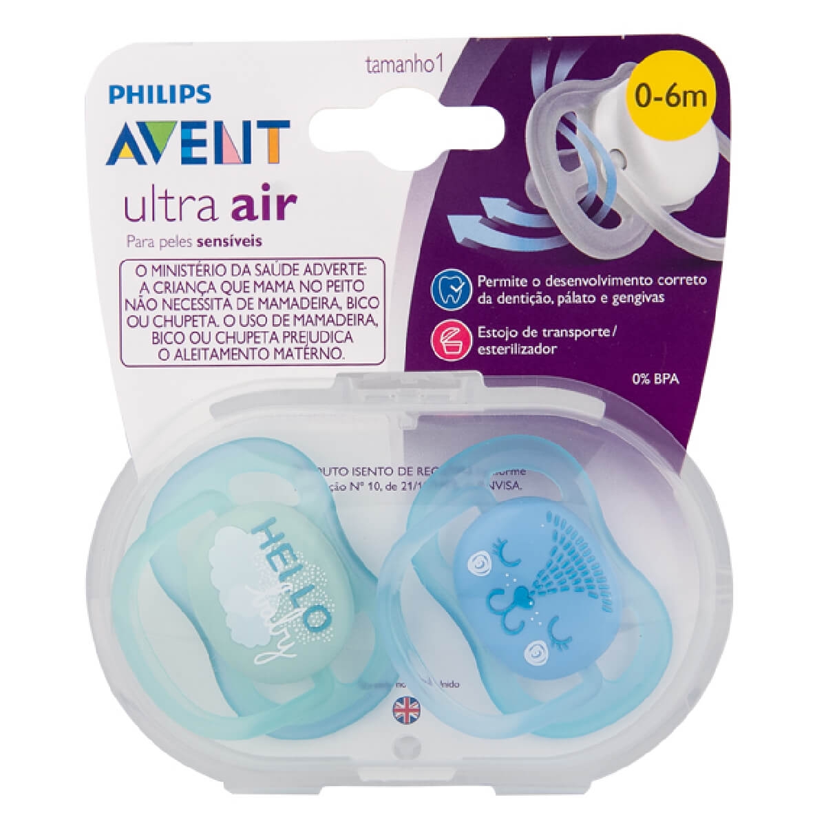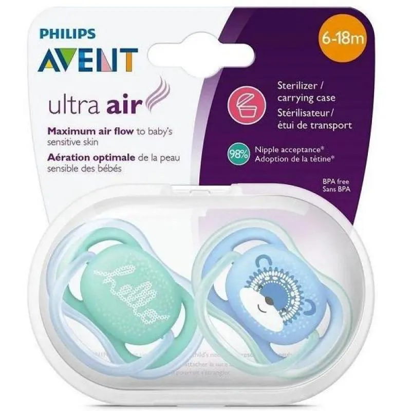 CHUPETA ULTRA AIR DUPLA 6-18 MESES DECORADA MENINO PHILIPS AVENT SCF342/22