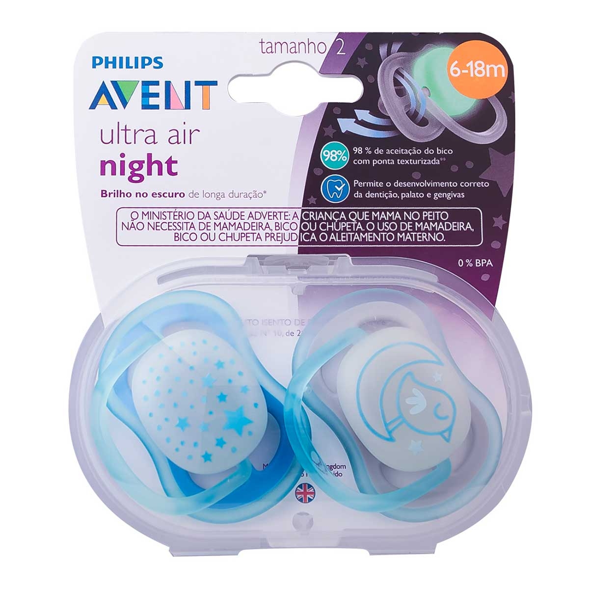 Chupeta Philips Avent Ultra Air Night 6 a 18 Meses Azul com 2 unidades