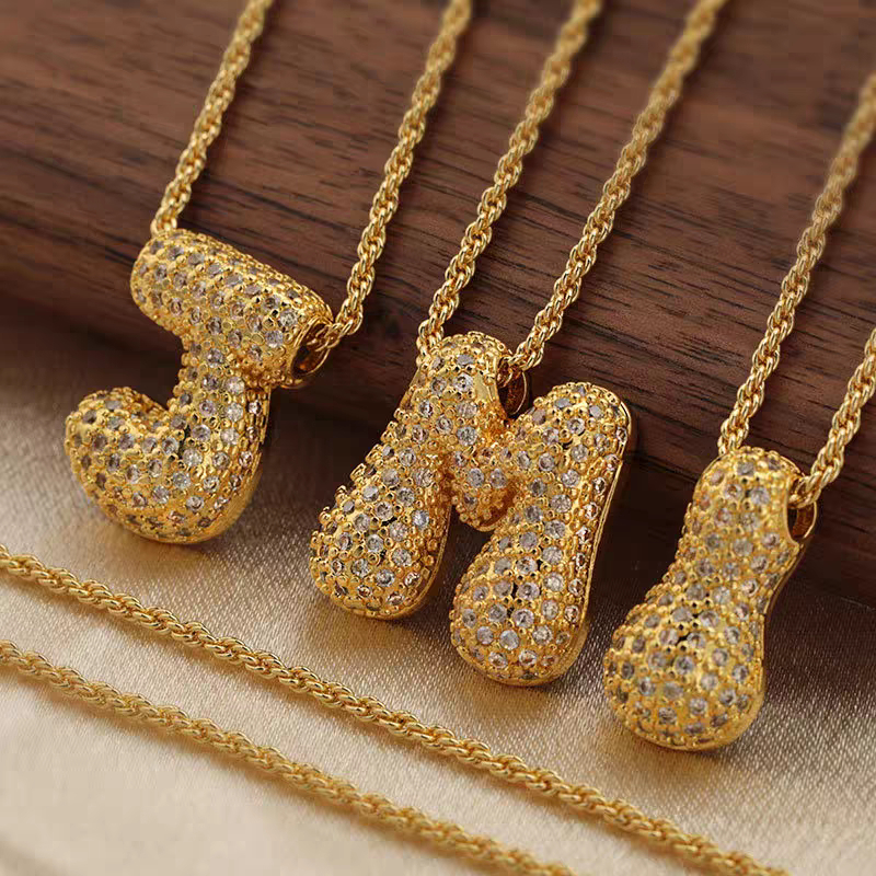Colar com pingente de zircônia brilhante de alta qualidade A-S nome do alfabeto pingente inicial prata925 ouro18k