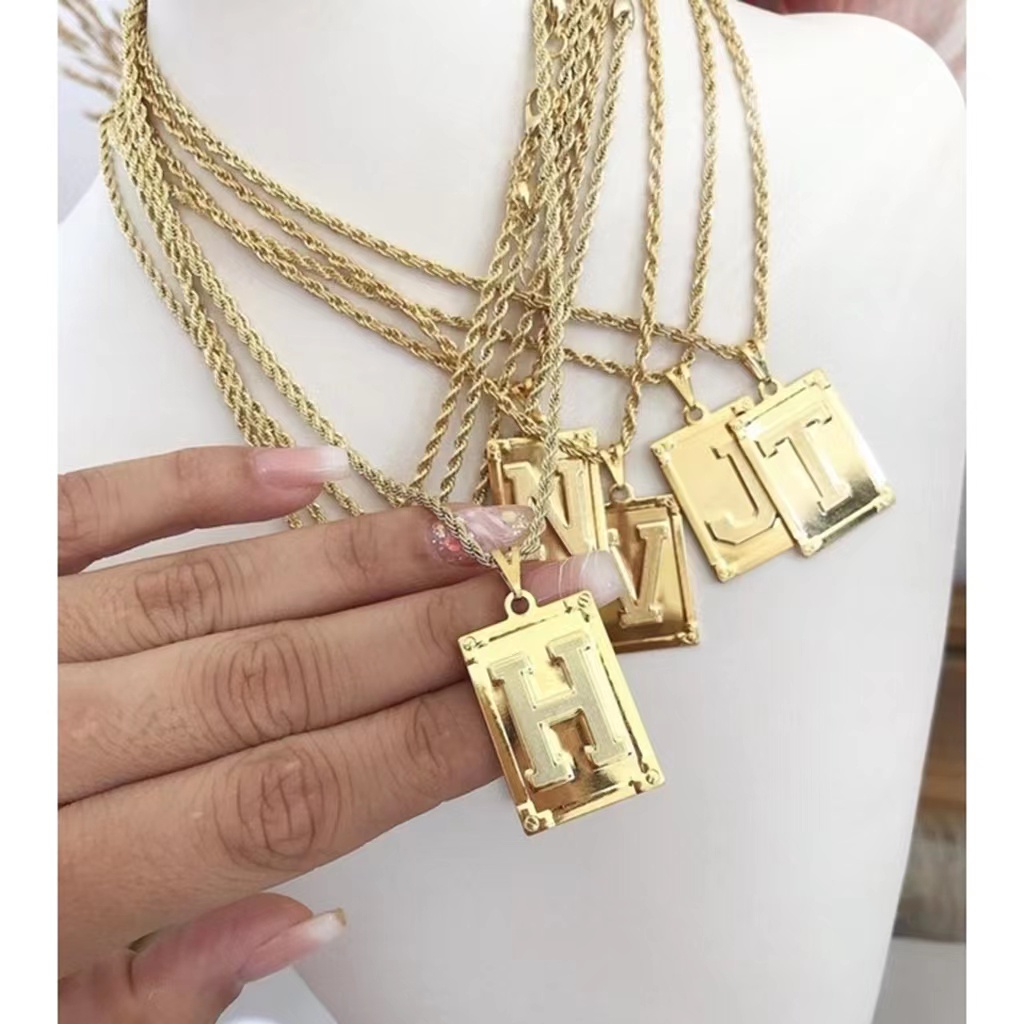 F-OPLUS | Colar Masculino com Inicial do Nome 2.5mm 60cm Corrente Masculina com Pingente de Letra Gravada TNM002