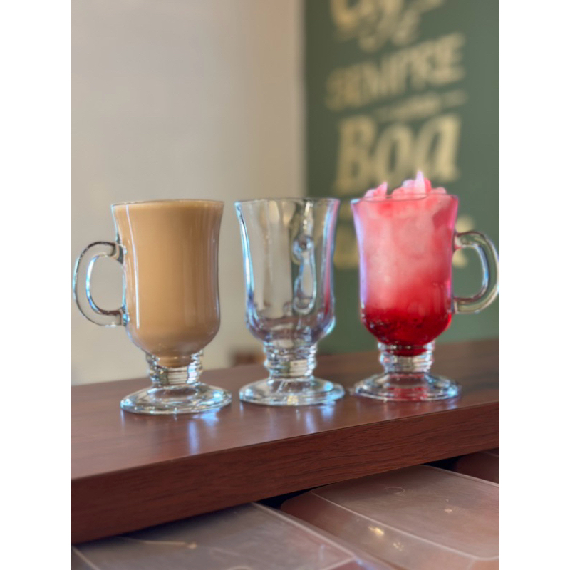 JG 3 De Canecas Vidro - Xícaras de Vidro 180ml Café Capuccino Chocolate Macchiato Mochaccino Chá Instagramável Compacta Charmosa Decoratíva