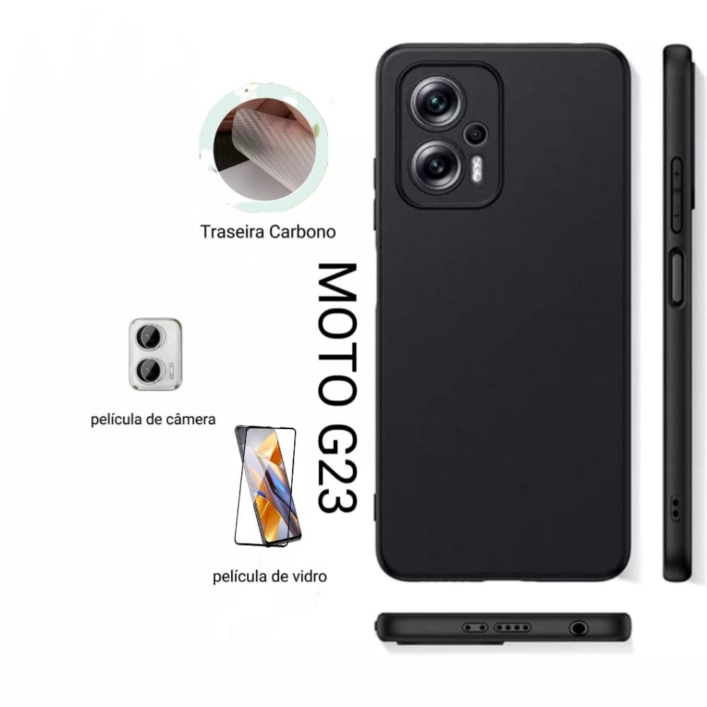 Kit 4 en1 película Vidro 3d +Vidro de câmera moto G23 g53 g73 g32 g13 +Traseira de Carbono+ case capa coque funda silicone líquido macio case de volta para motorola moto g23 Capa Silicone Moto G23 4G