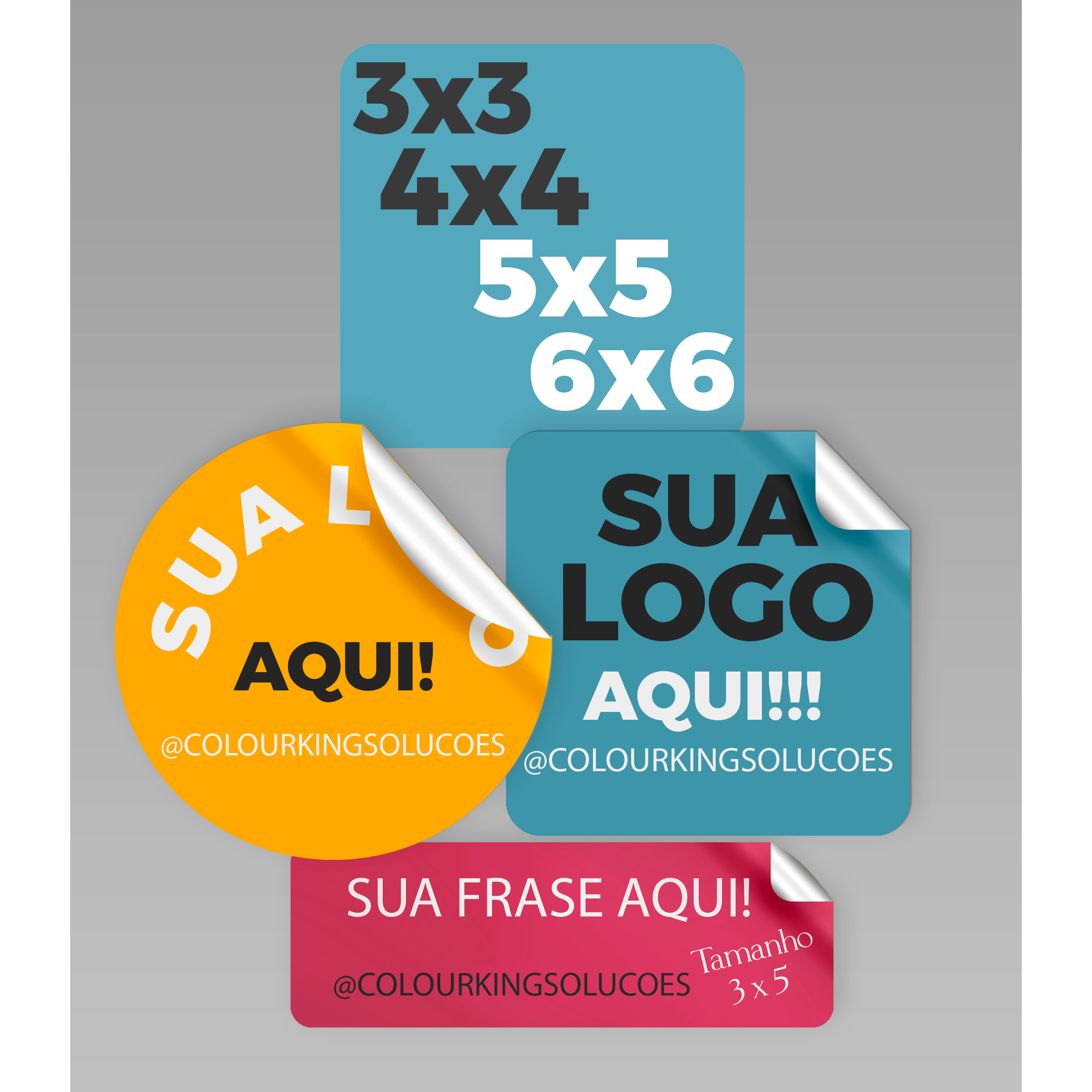 100 Adesivos Personalizados 3x3 cm com Sua Arte, Imagem ou Logotipo, JÁ RECORTADOS PRONTO PRA DESTACAR E COLAR.