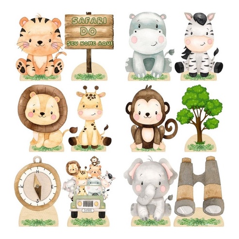 Kit 10 Display Mesa Safari Aquarela Festa Decoração 20cm