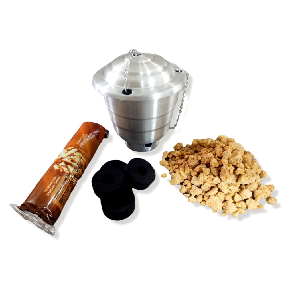 Kit Defumação Completo Mirra Benjoim Incenso Turíbulo Carvão