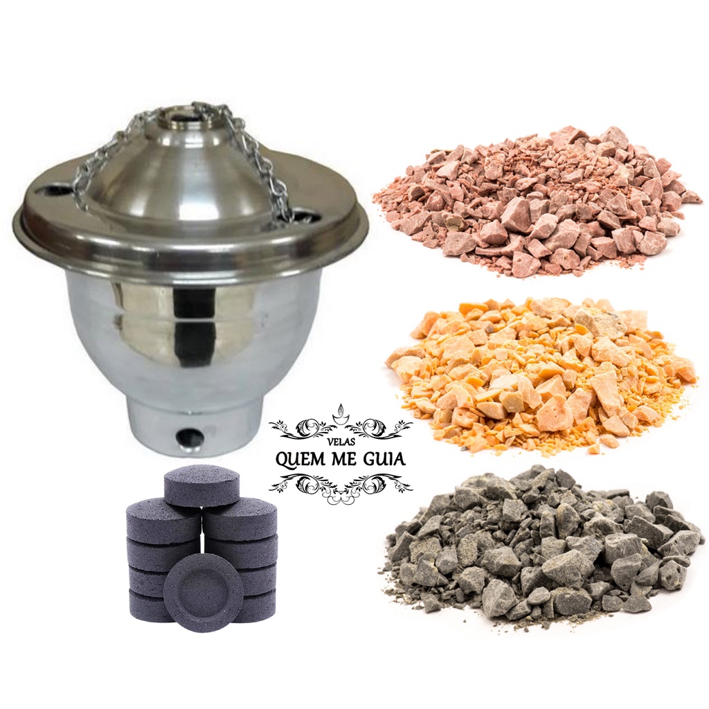 Kit Defumação Incenso 500g + Turibulo + Carvão Em Disco