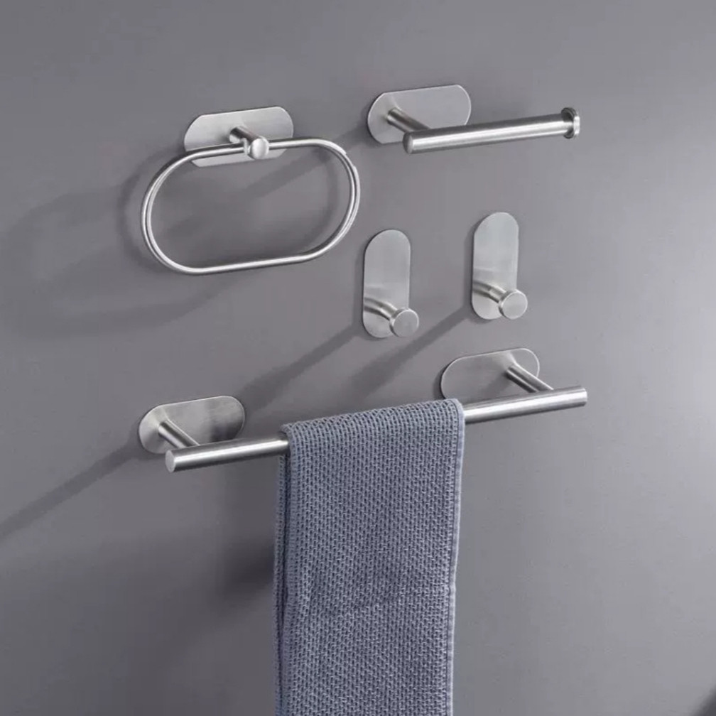 Kit Conjunto Acessório Banheiro Cabide Toalheiros Papeleira 5 Peças Adesivo Sem Furar a Parede