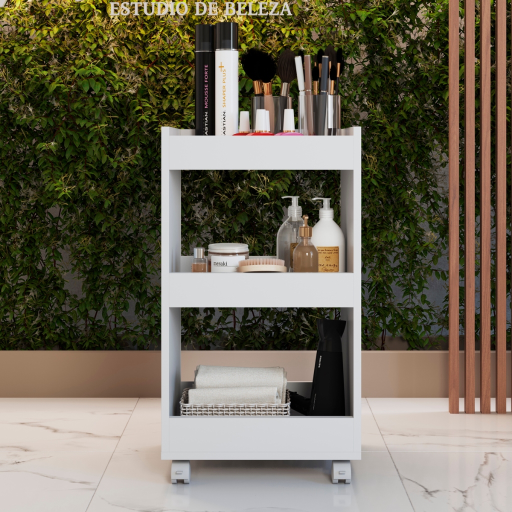 Carrinho Balcão Pequeno Branco Com 4 rodizios Auxiliar Para Salão, Casa E multiuso Preto/Branco