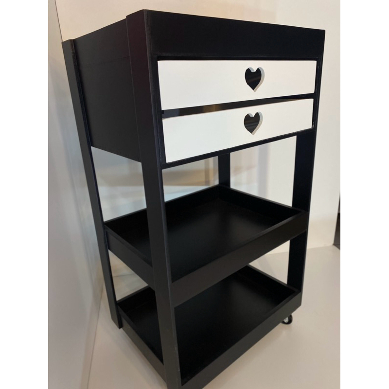 Carrinho auxiliar preto prateleira multiuso com gavetas de coracao na parte de cima