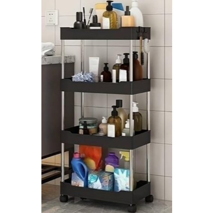 Prateleira Carrinho com Rodinhas Auxiliar Organizador de Objetos Multiuso 4 Andares preto/branco