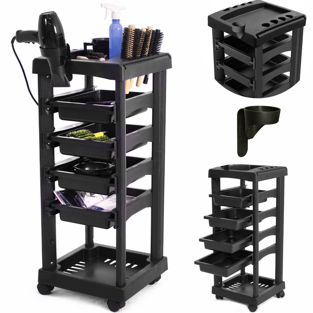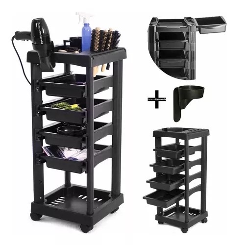 Carrinho Mesa Multiuso 4 Gavetas com Porta Shampoo Elegance Santa Clara Cor Preto Beleza
