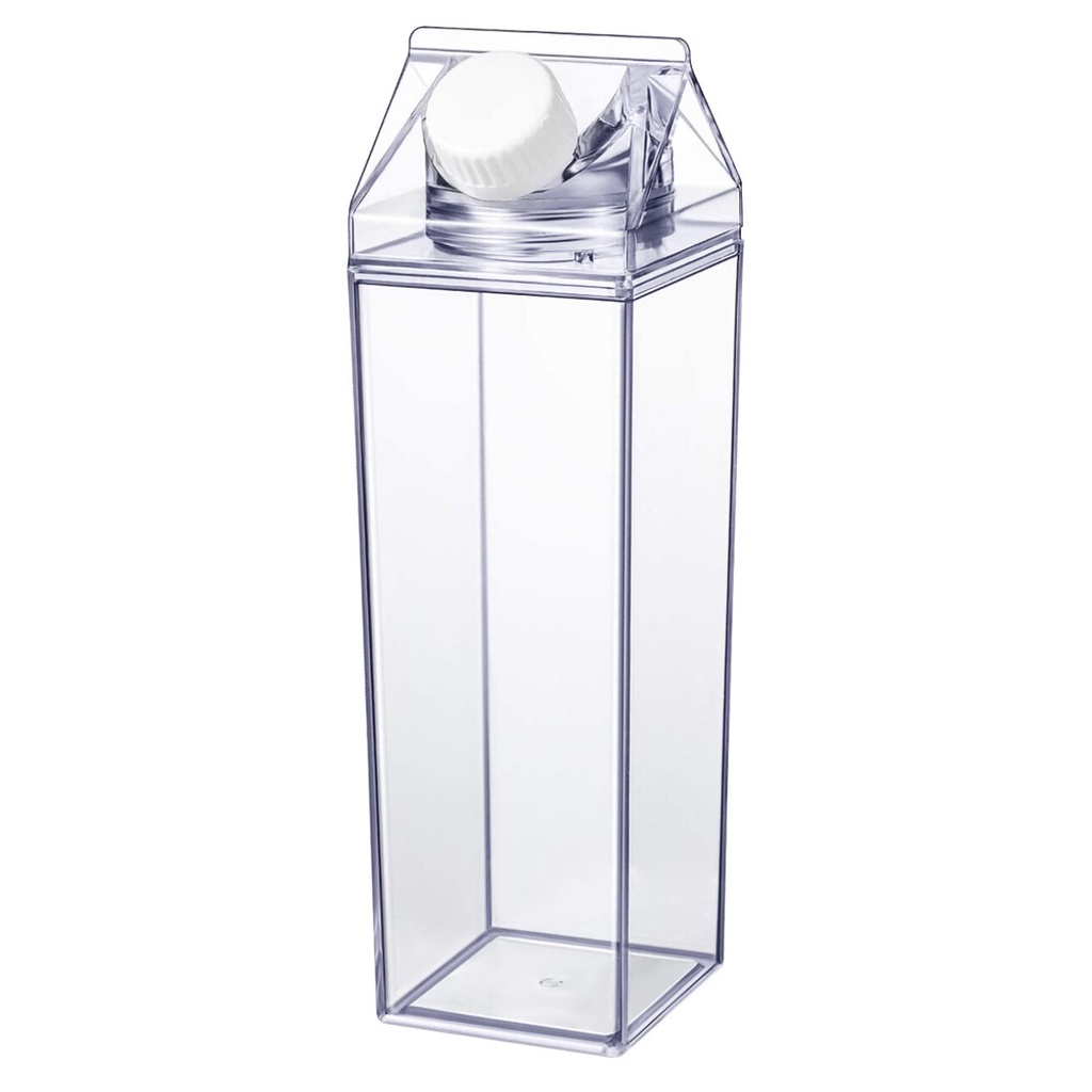 Garrafa Transparente Plástico Acrilico Em Formato Caixa De Leite Portátil Geladeira 1 Litro Sem BPA Resistente