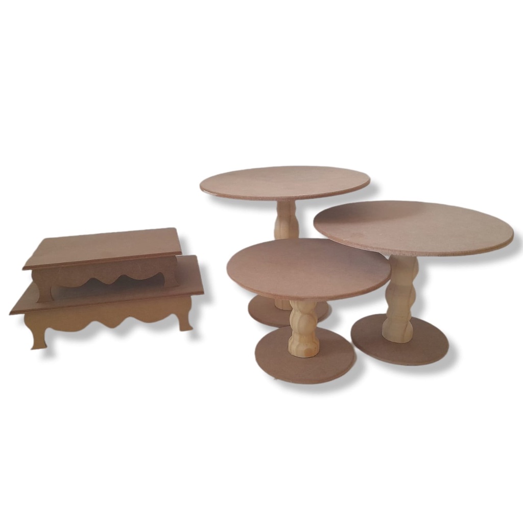 Kit 5 Peças Festa Boleira Bandeja Lembrancinha Mesinha Decoração Mdf Cru
