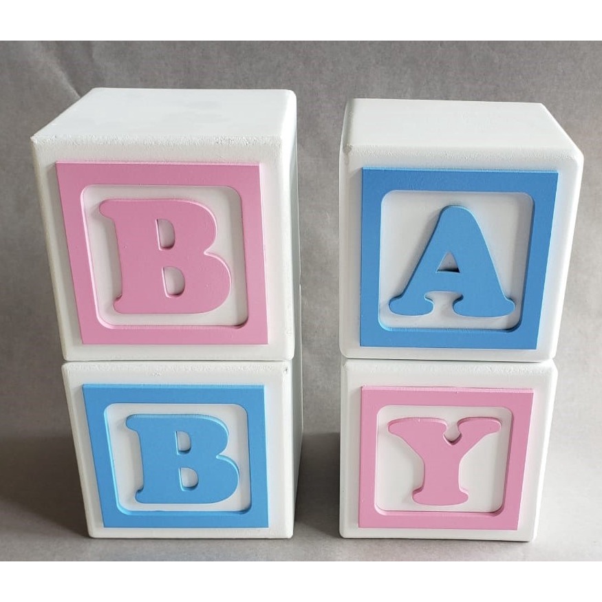 kit 4 cubo baby 10 x 10 mdf decorado caixa cha revelação cha de bebe festa aniversario decoração de quarto bebe.