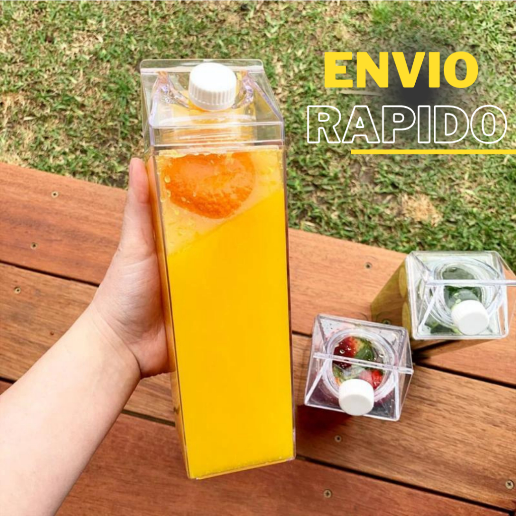 Garrafa Transparente Plástico Acrilico Em Formato Caixa De Leite Portátil Geladeira 1 Litro Sem BPA Resistente