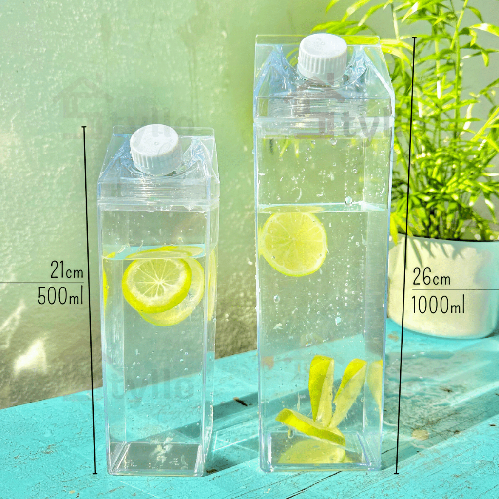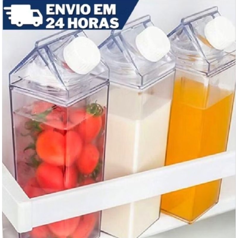 Garrafa De Acrílico Transparente Formato Caixa De Leite 500ml E 1 Litro Geladeira Agua Suco Utilidade Cozinha