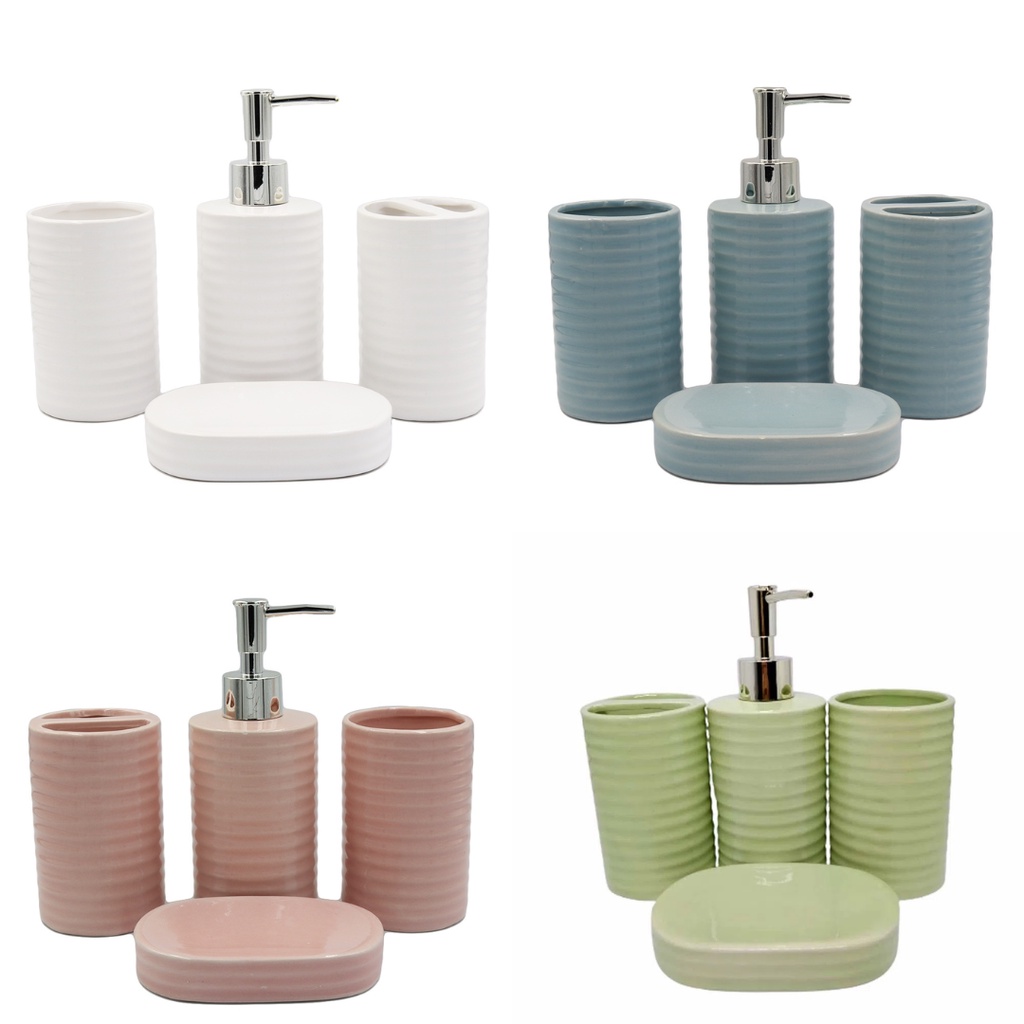 Kit de Banheiro Cerâmica 4 Peças Porta Sabonete Líquido /Saboneteira/Porta Escova/Porta algodão