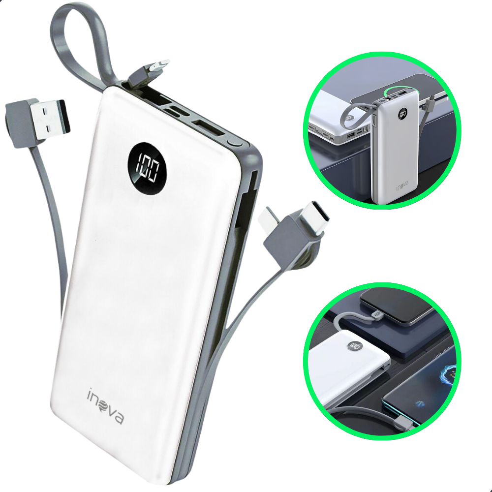 Carregador Portátil Power Bank Bateria Externa 20.000mah 4 em 1 com Display Digital Universal Compativel com todos os celulares cabos embutidos