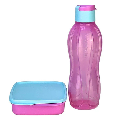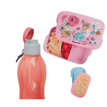 Kit Garrafa Tupperware Eco Tupper Plus 1 litro + Basic Line com Divisórias 550ml Tutu Rosa kit 2 Peças