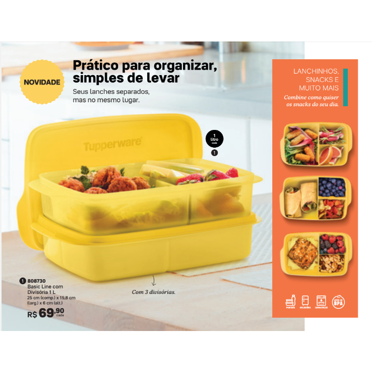 Tupperware Pote Marmita Basic Line 550ml Com Divisorias