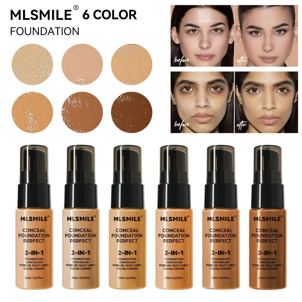 Mlsmile 6 Color Liquid Foundation Base Líquida Colorida de Longa Duração Não Decola à prova d'água Fácil de empurrar
