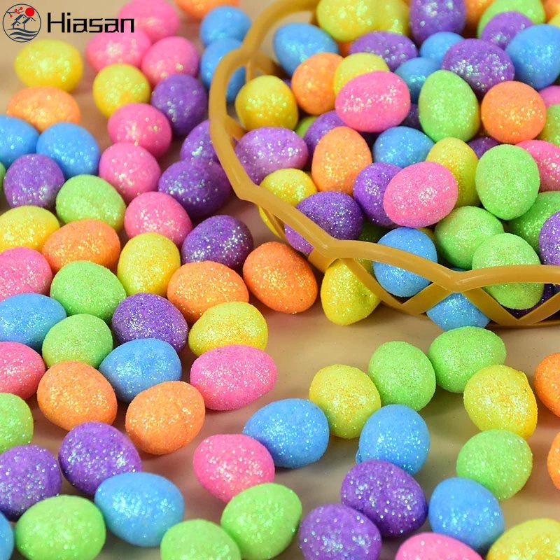 80 Pcs 1,5 * 1,8cm Mini Ovos Artificiais De Páscoa Suprimentos Para Festas Pequenos Sortidos Glitter Poliestireno Colorido Espuma De Isopor Pássaros Decoração De Jardim Doméstico