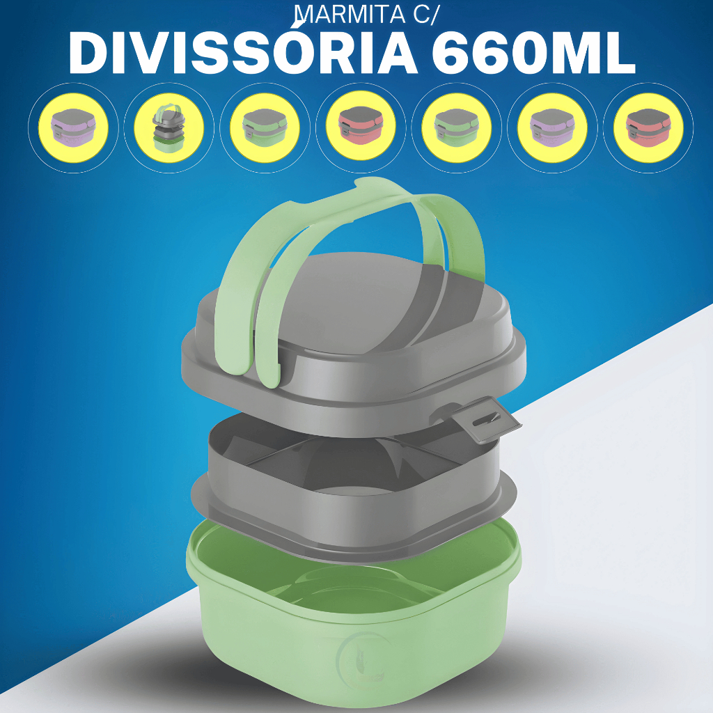 Pote Lancheira Marmita Fit 2 Compartimentos Divisórias e Alças Microondas Freezer Lancheira Escolar