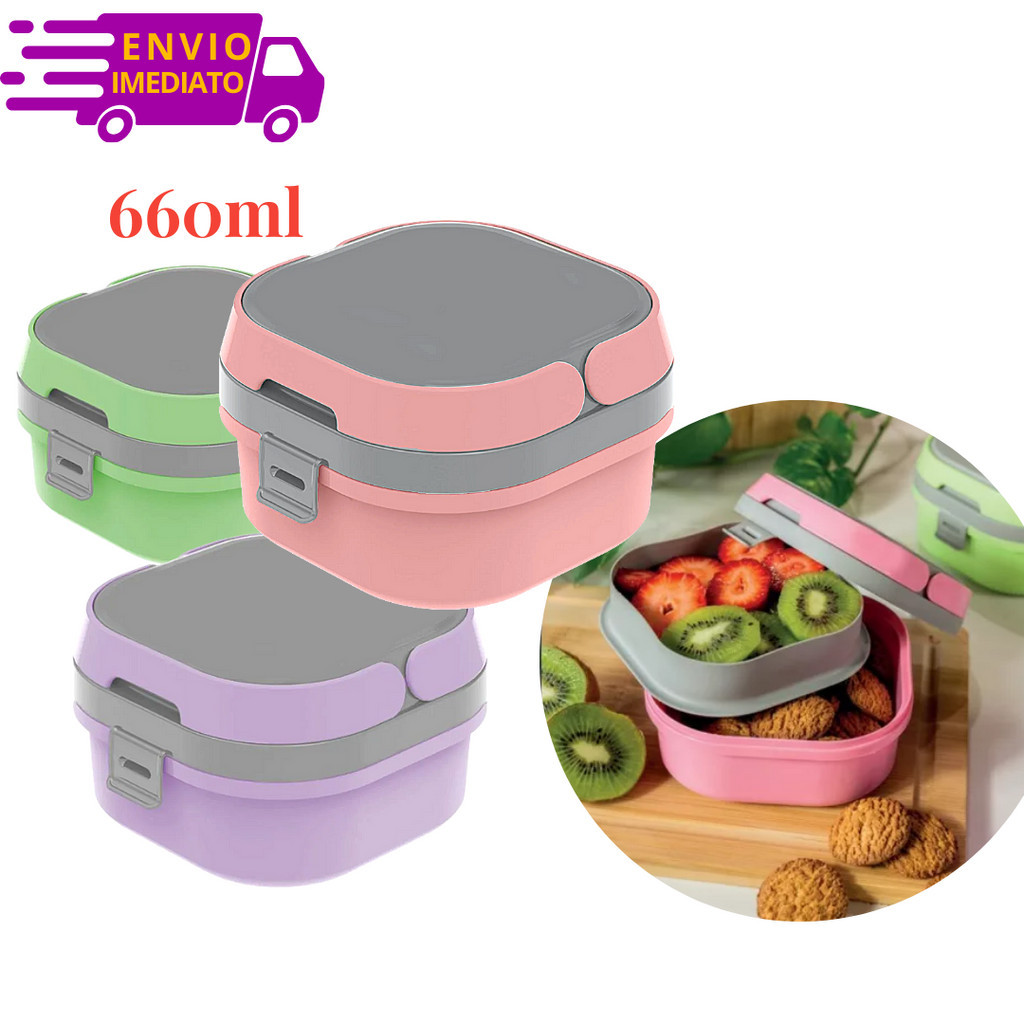 Marmita Pote Lancheira Escolar Com Travas E Divisórias E Dois Compartimentos