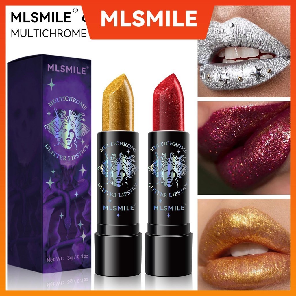 Batom Perolado Mlsmile Batom Perolado Hidratante Fácil de Colorir Batom Batom Ouro Prata Preto Batom Diamante
